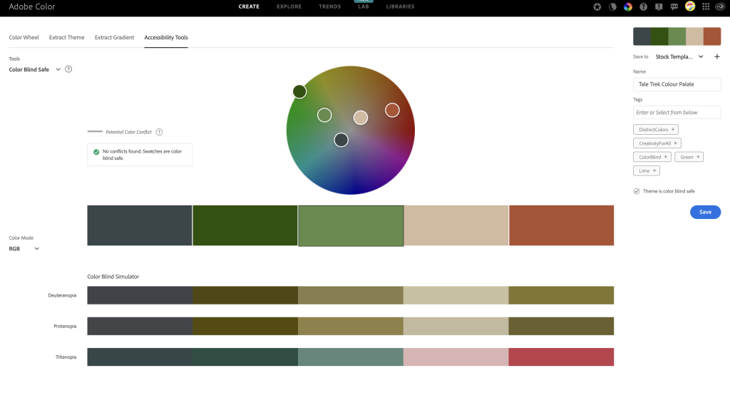 Using Adobe Colour to see if the colour palate is colour blind safe.