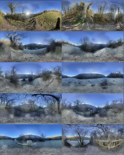 For Tale Trek, I wanted the average walk length to span around 20-30 minutes to complete, however this would require an extensive number of 360 photos to cover this distance which is unnecessary for the product I’m wanting to achieve. Therefore I only took an image around every 300 yards to keep the tour more concise and not overwhelm the user. Similarly to recording videos for the animation it was hard trying to take images without getting other people in the photo as well due to the path being public, this was made even more difficult by the shear time it took to take 1 image which was around 6-7 minutes. I wanted to avoid this by visiting the location earlier in the morning or later at night but then the lighting would be too dark and not consistant enough.