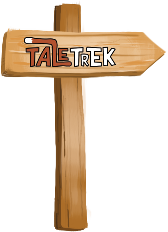 I wanted to give the tour a more dynamic feel so that the virtual tour world didn’t just consist of the 2D mascots but also other 2D digitally drawn elements. I drew out a ‘Tale Trek’ sign which is also used throughout the marketing and branding as well as a selection of tree’s that bulk out the background of the 360 images and make it appear more full.