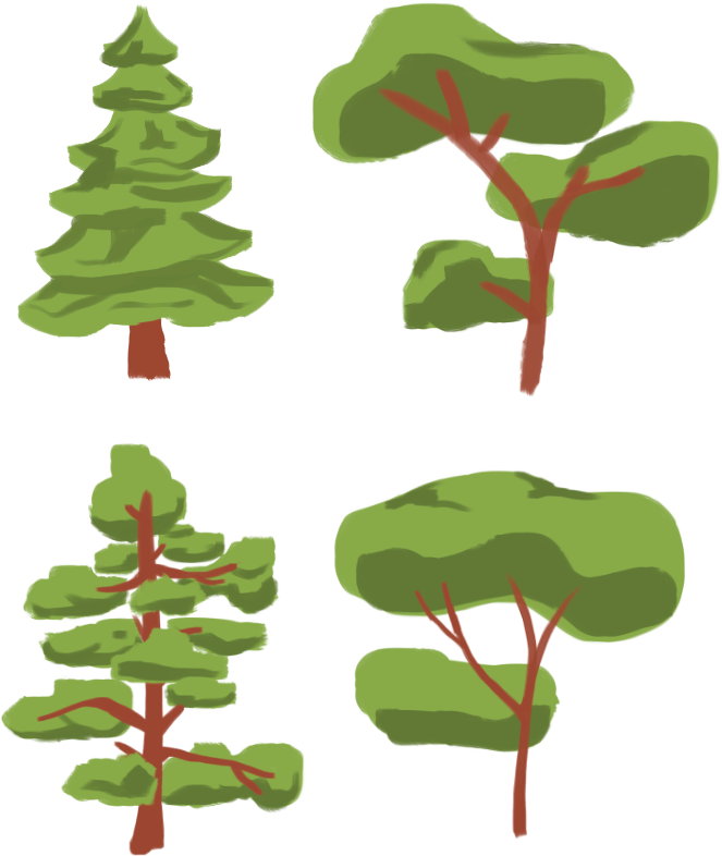 For the fox, I drew 4 different designs so that any one of them could be situationally placed when the fox needs to be pointed in a different direction.